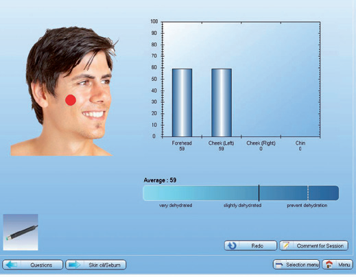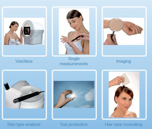 配置:油脂測試探頭、水份測試探頭、黑色素和血紅素測試探頭、彈性測試探頭、酸堿度pH測試探頭、水份流失TEWL測試探頭、皮膚表面(miàn)溫度測試探頭和USB接口帶偏振光的彩色皮膚顯微鏡頭。